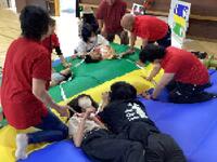 写真左 5年4組、6年5組 遊びの学習「ゆれ遊び」