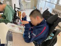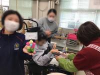 高等部造形班ではアクリル毛糸を使った新商品「アクリルフラワーメモスタンド」を製作しています。