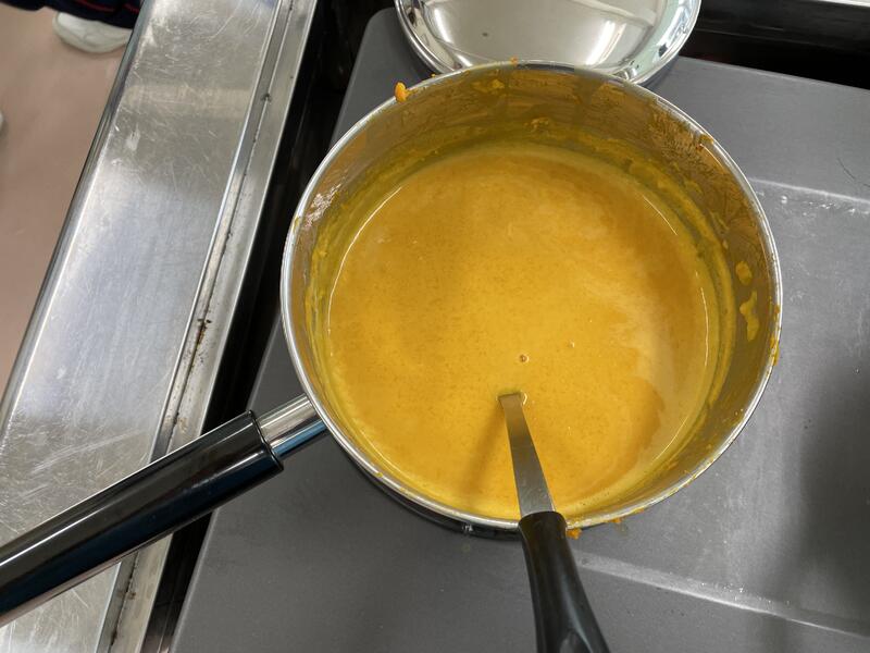 今回は、自分たちで育てた野菜の味を実際に確認するためにポタージュを作って試食しました。