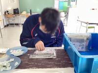 外部実習期間は1週間から2週間と生徒によって様々でしたが、校内では、ほっとファーム様より委託を受けたしいたけを砕く作業、パソコン入力作業、エコ袋作りに取り組みました。