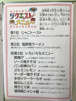 2月は高等部3年生のリクエスト給食として、高等部3年生がもう一度食べたいメニューが給食に登場しました。